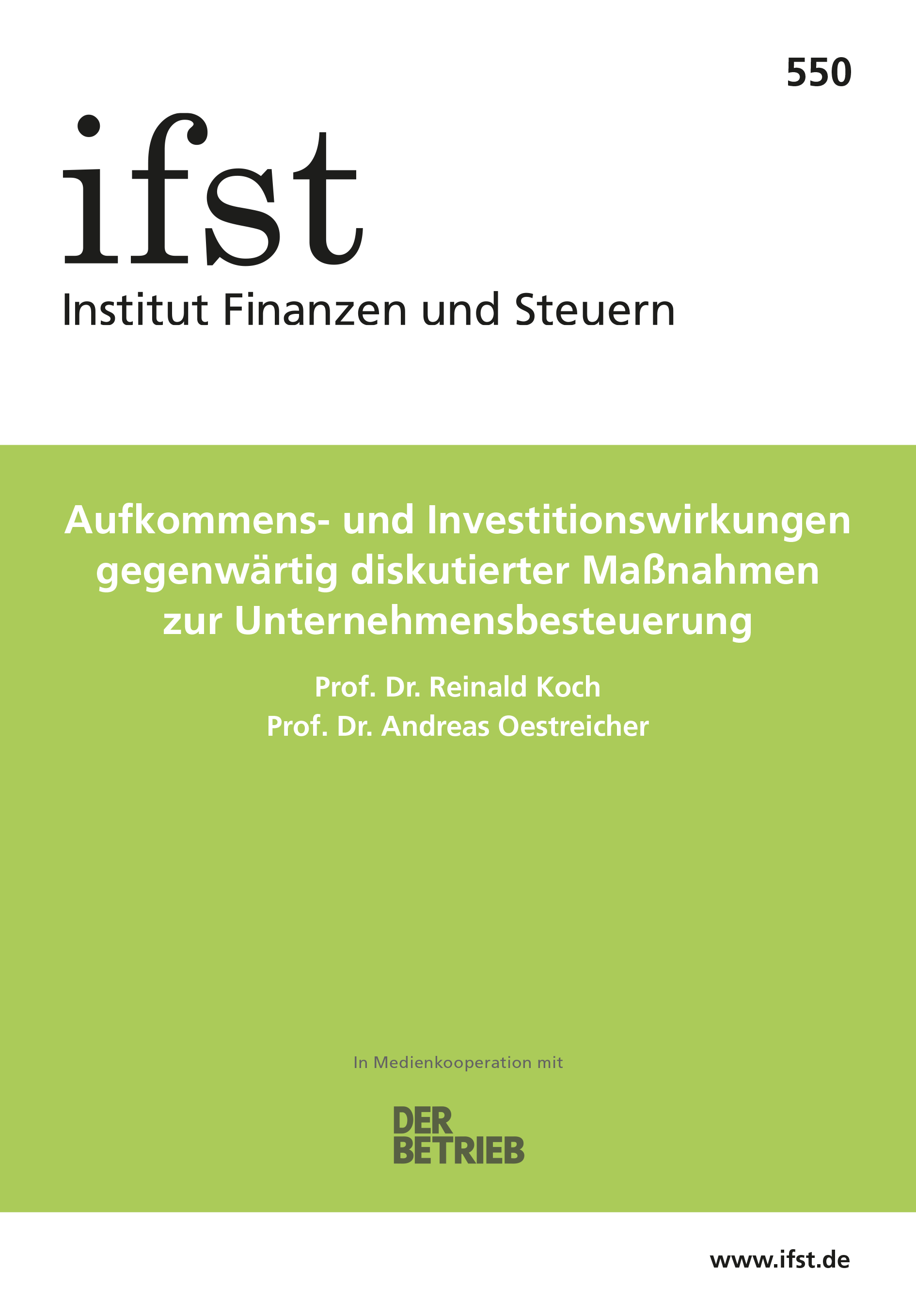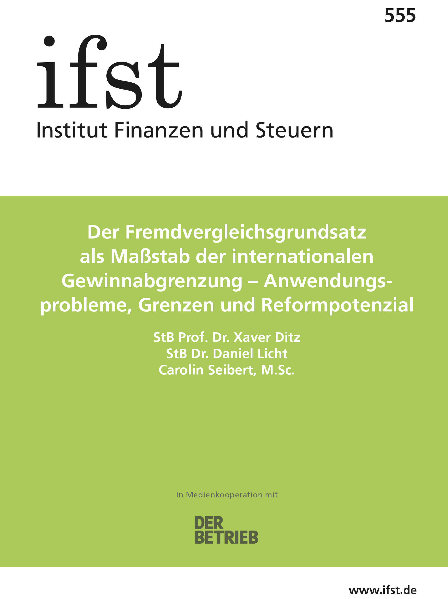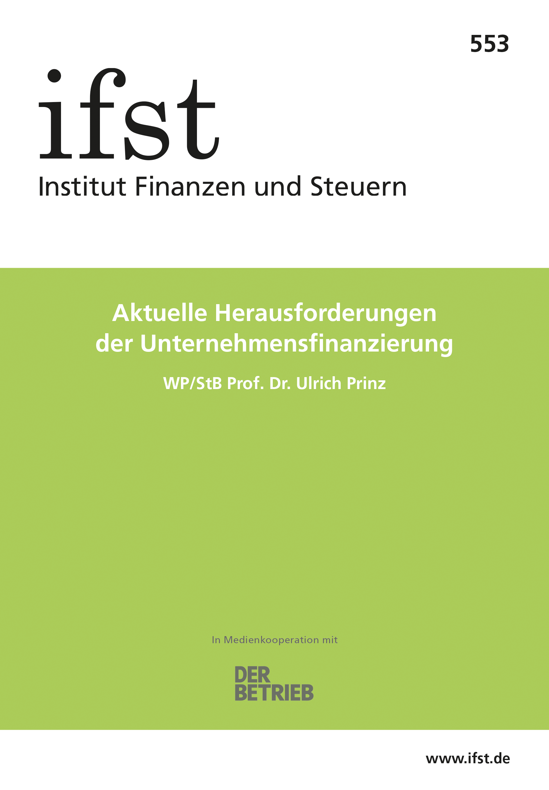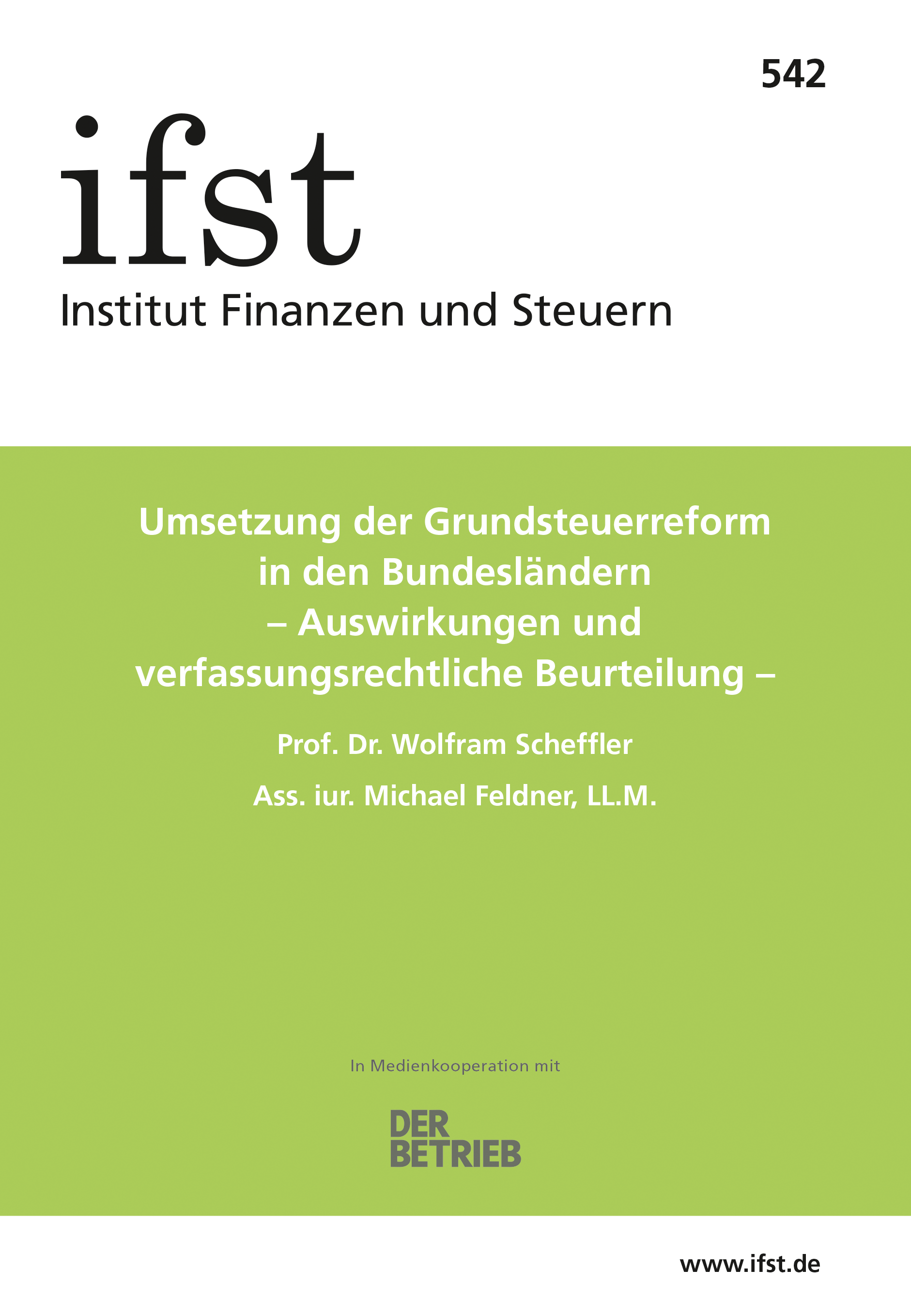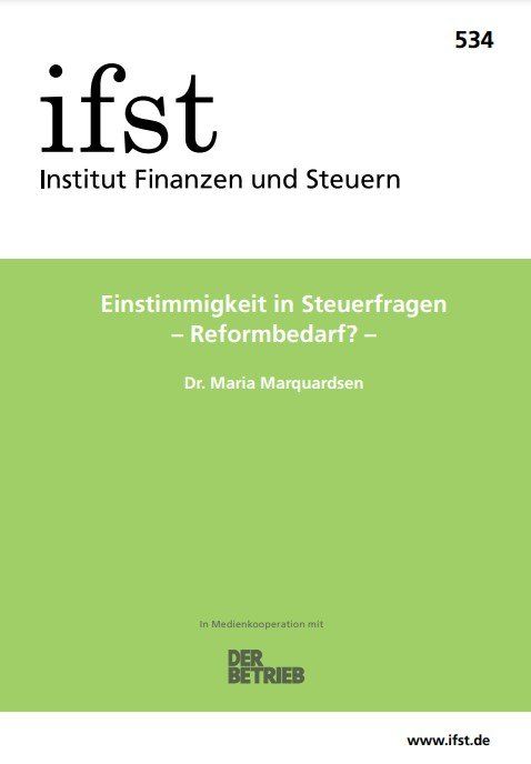 Bei Interesse an einzelnen Schriften und für Rückfragen zu Abos und Bestellungen steht Ihnen auch das Büro des Instituts Finanzen und Steuern zur Verfügung: Dorit Weiske, office@ifst.de, Tel.: 030/92 15 31 00.