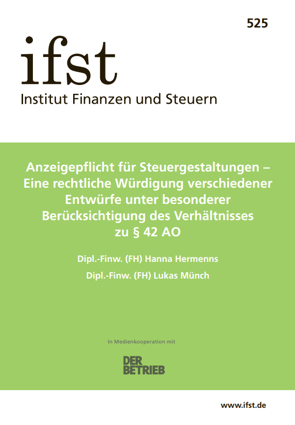 Anzeigepflicht für Steuergestaltungen – Eine rechtliche Würdigung verschiedener Entwürfe unter besonderer Berücksichtigung des Verhältnisses zu § 42 AO